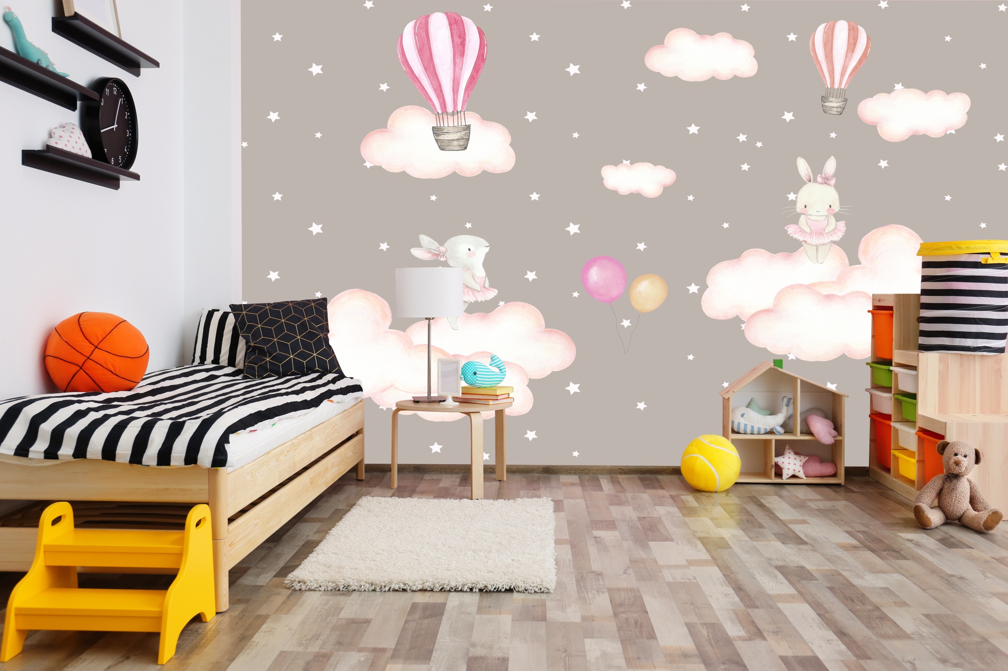 Fototapeta dla dzieci króliczki na chmurkach dwk026
