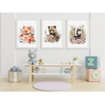 Zestaw 3 plakatów do pokoju dziecięcego akwarela, kwiaty, zwierzęta mp059