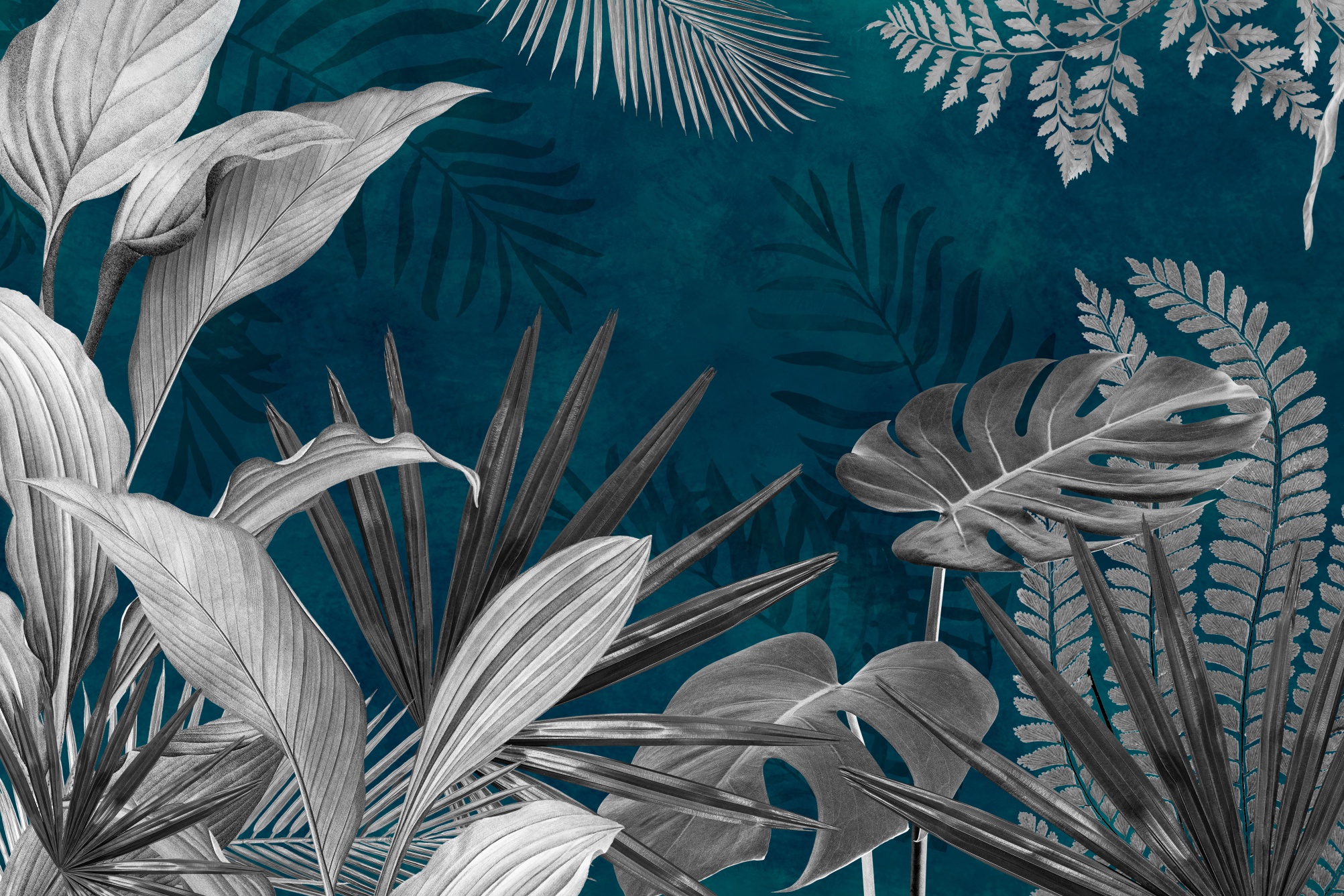 Fototapeta tropikalne liście, monstera, paproć 5553